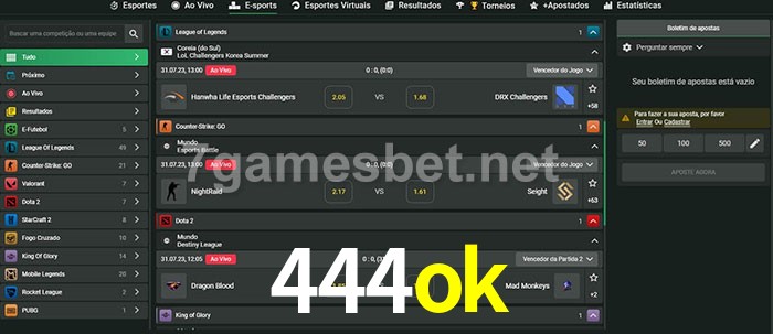 O 444ok oferece uma grande seleção de opções de apostas em e-sports com probabilidades competitivas